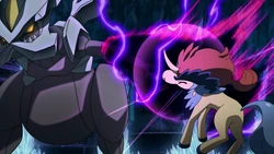 Kyurem Negro arremete con un poderoso ataque que al chocar con uno de